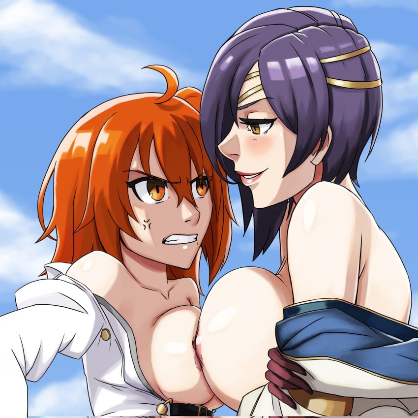 Tags: 2girlsangryareolaeasymmetrical dockingbare shouldersbreast pressbreastsbreasts outbrown eyescahryosclenched teethcollarboneevil grinevil smilefate (series)femalefemale onlyfire emblemfire emblem heroesfujimaru ritsuka (female)glaringglovesgringudakohair over one eyeimageboardkiran (fire emblem)kiran (fire emblem) (female)large breastslipsticklooking at anothermedium breastsmedium hairmultiple girlsnintendonipplesoff shoulderorange eyesorange hairoutdoorspurple hairred lipsred lipstickRule34short hairshouldersskysmirkundressingyuri