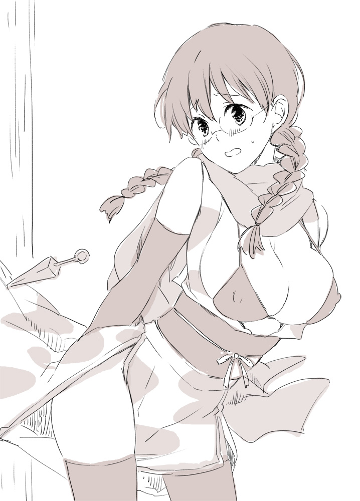 Tags: alternate costumealternate version availablebig breastsbikini topblushbraided hairbraidscleavageelbow glovesembarrassedfemalefemale onlygenderswap (mtf)gintamaglassesimageboardjapanese clotheskimonokunaikunoichileaning forwardlooking at viewermiwamonochromenervousnipple bulgeobirule 63Rule34scarfshimura shinpachishort kimonosketchsolosweatdropthighhighstwin braids