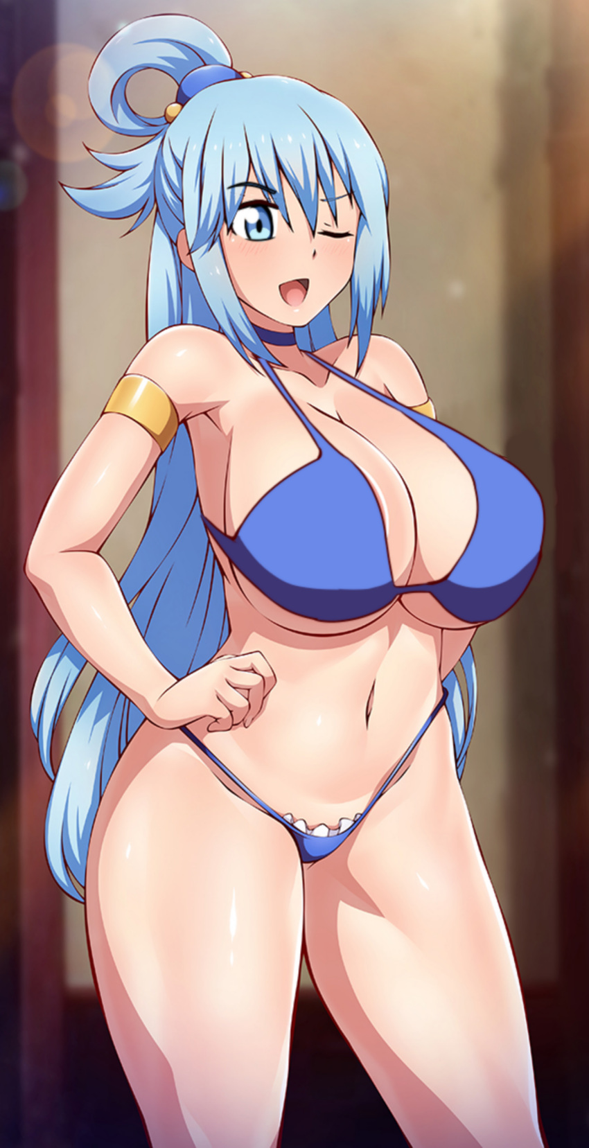 Tags: 1girlsaqua (konosuba)armpit peekbig breastsbikiniblue eyesblue hairblue-senpaiblushbreastsbustycleavagefemalefemale onlyhand on hiphighreshuge breastsimageboardkono subarashii sekai ni shukufuku wo!legslong hairnavelone eye closedopen mouthRule34smilesoloswimsuitthick thighsthighsvoluptuous