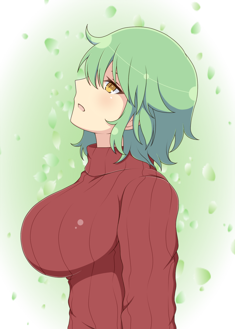 Tags: 1girlsexpressionlessfemalegradient backgroundgreen hairhikage (senran kagura)huge breastsichiryuu tsumikiimageboardimpossible clotheslight skinlight-skinned femalelooking upmedium hairopen mouthRule34senran kaguraside viewsimple backgroundslit pupilssolostandingsweateryellow eyes