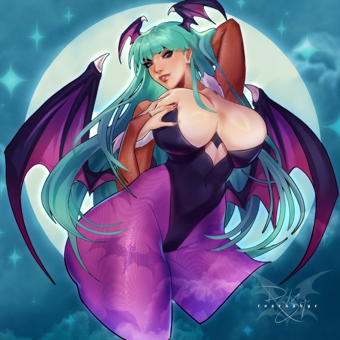 Tags: 1girlsareola sliparm behind headbat wingsbig breastsbreast grabbreastsbursting breastsbustycapcomcleavagedarkstalkersdemon girlfemalefemale onlygrabbinggreen eyesgreen hairimageboardlarge breastsleotardlipsticklong hairmakeupmorrigan aenslandparted lipsRule34seductive smilesensualsmilethick thighsthighsvoluptuouswings