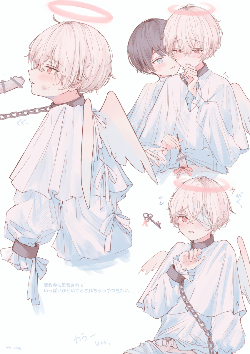 Tags: 2boysabsurdresangelangel wingsbar censorblack hairblue eyesblushcensoredchainschastity beltcollarcuffshalohandcuffshighresimageboardkeyleashlong sleeveslooking at viewermale focusmultiple boysniufogoriginalpenispink eyespink hairRule34shirtshort hairwhite backgroundwhite shirtwingsyaoi