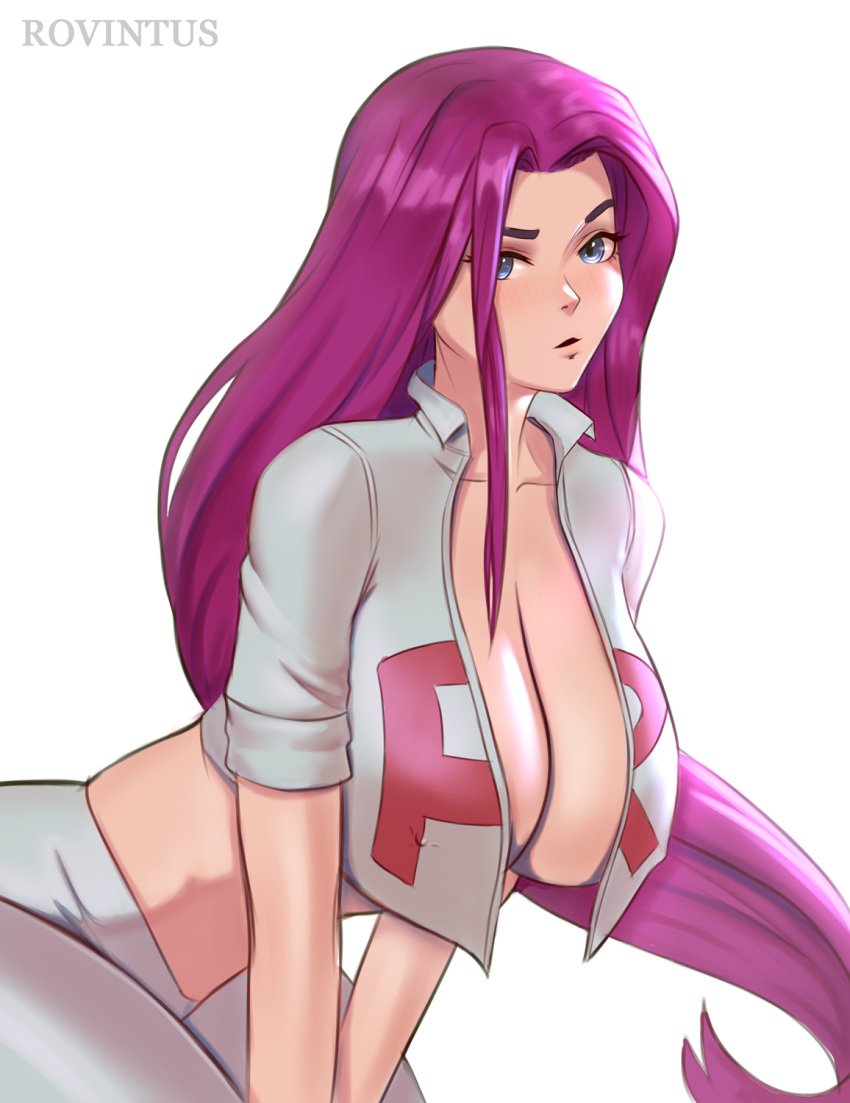 Tags: blue eyesbreastsfemalehighresimageboardjessie (pokemon)large breastslooking at vieweropen clothespokemonpokemon (anime)pokemon (classic anime)purple hairrovintusRule34simple backgroundsingle lettersoloteam rocketteam rocket uniformwhite background
