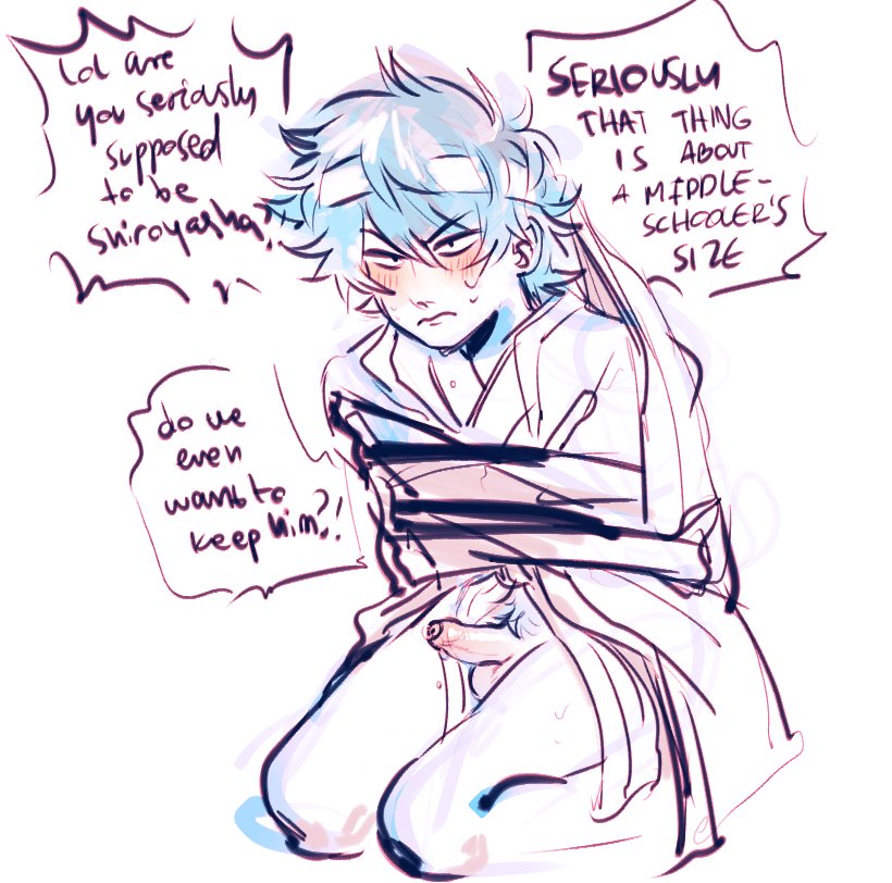 Tags: angryannoyedarms behind backblushboundcolored sketchdialoguedoodleembarrassedenglish textgintamagintoki sakatahumiliationimageboardmalemale onlyniichanoffscreen characterpenisrestrainedrough sketchRule34samuraisketchsmall penissmall penis humiliationsolo focussweatuncutunretracted foreskin