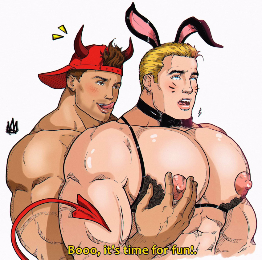 Tags: bunny earsdevil hornsdevil taildialogueenglish textgayhorny maleimageboardlicking lipsmalemale onlymusclesmuscularmuscular malenipple playnipple tweakpec squeezepecspleasure facerodrigolandave8Rule34