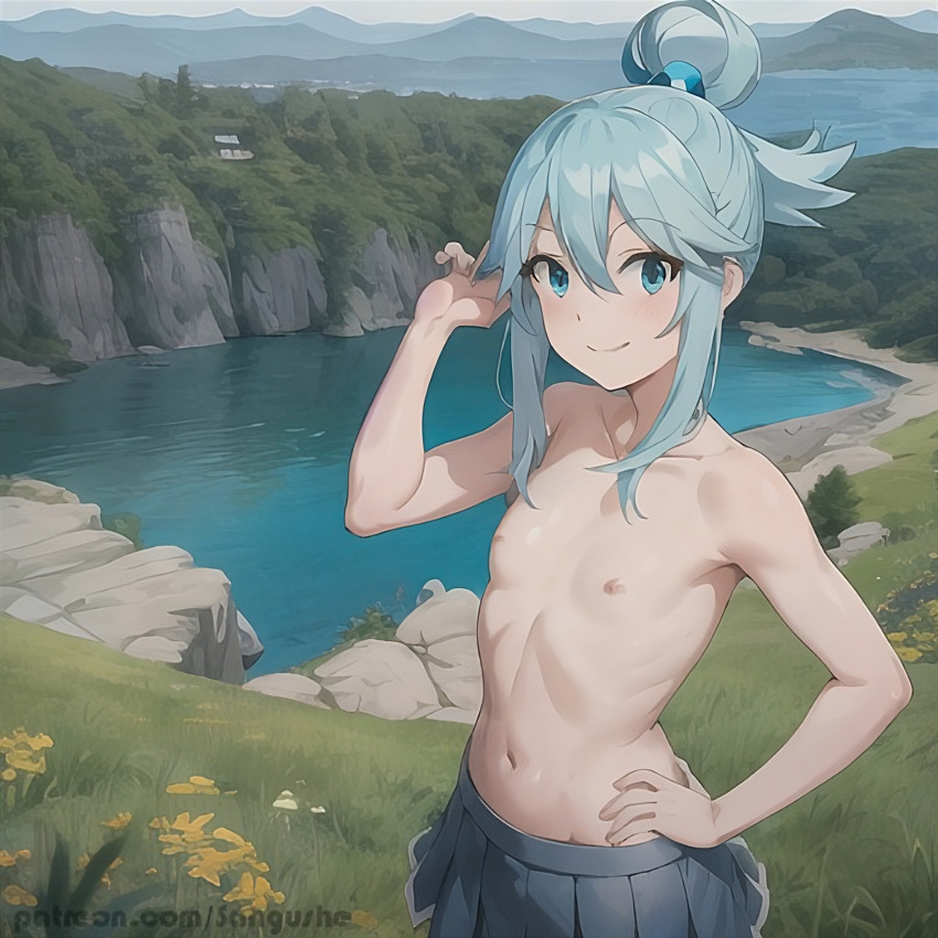 Tags: ai generatedanimeaqua (konosuba)blue eyesblue hairbreastsfemaleflat chestflat chestedimageboardkono subarashii sekai ni shukufuku wo!mangaRule34sangusheskirtsmall breasts