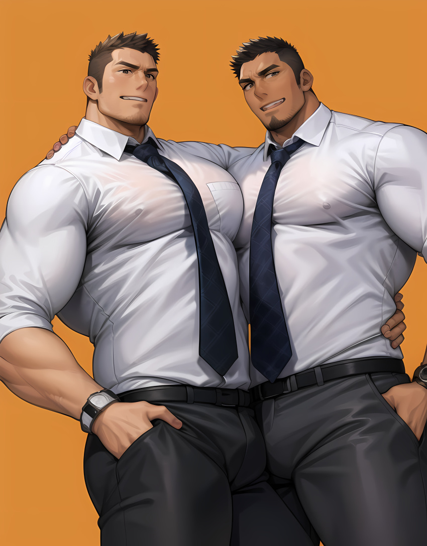 Tags: 2boysai generatedbarabeardbeltbetween pectoralsblack hairblack pantsbrown hairbulgecollared shirtcovered nipplesdark skindark-skinned malefacial hairimageboardlarge pectoralslooking at viewermale focusmature malemultiple boysmuscularmuscular malenecktieorange backgroundpantspectoral presspectoralsRule34salarymansee-throughshirtshort hairsideburnssmilestable diffusionstubblethick armsthick eyebrowsthick thighsthighstightwet clotheswhite shirtyaoi