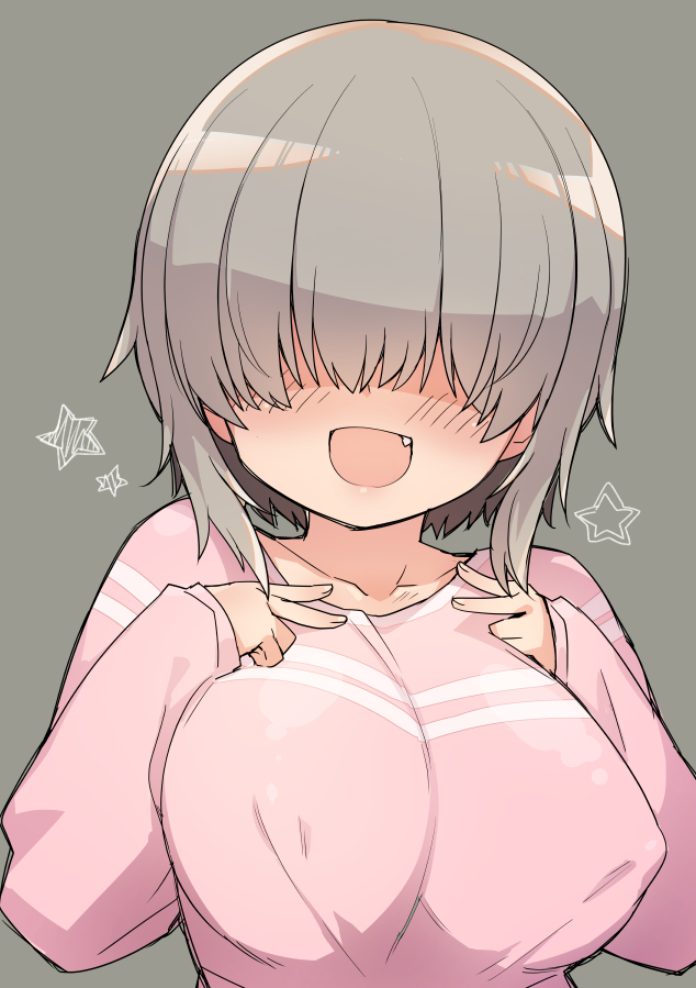 Tags: bangsblushbreastscollarbonecommissioncovered erect nipplesdouble vfemalegrey backgroundgrey hairhair over eyesimageboardlarge breastslong bangslong sleevesoerba yun fangopen mouthpixiv commissionRule34shirtshort hairsimple backgroundsmilesolostar (symbol)stromaupper bodyuzaki yanagiuzaki-chan wa asobitai!