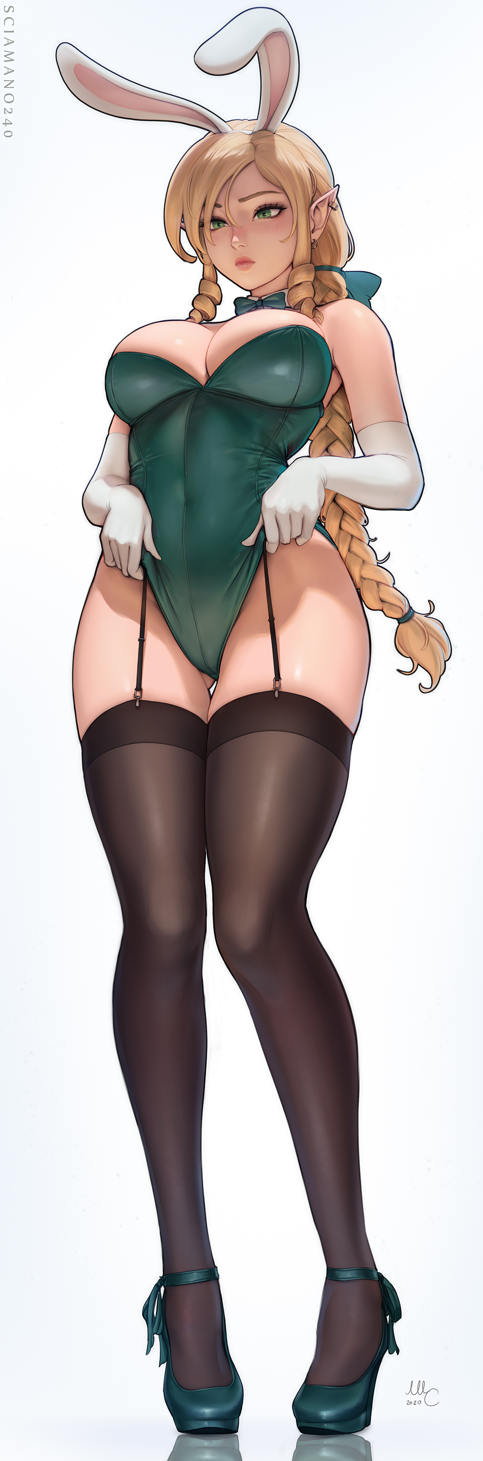 Tags: blonde femaleblonde hairblushbunny earsbunny girlbunnysuitgreen eyesgreen leotardhi reshigh heelsimageboardleotardmirco cabbiamyra (sciamano240)ocoriginaloriginal characterRule34sciamano240stockingswhite background