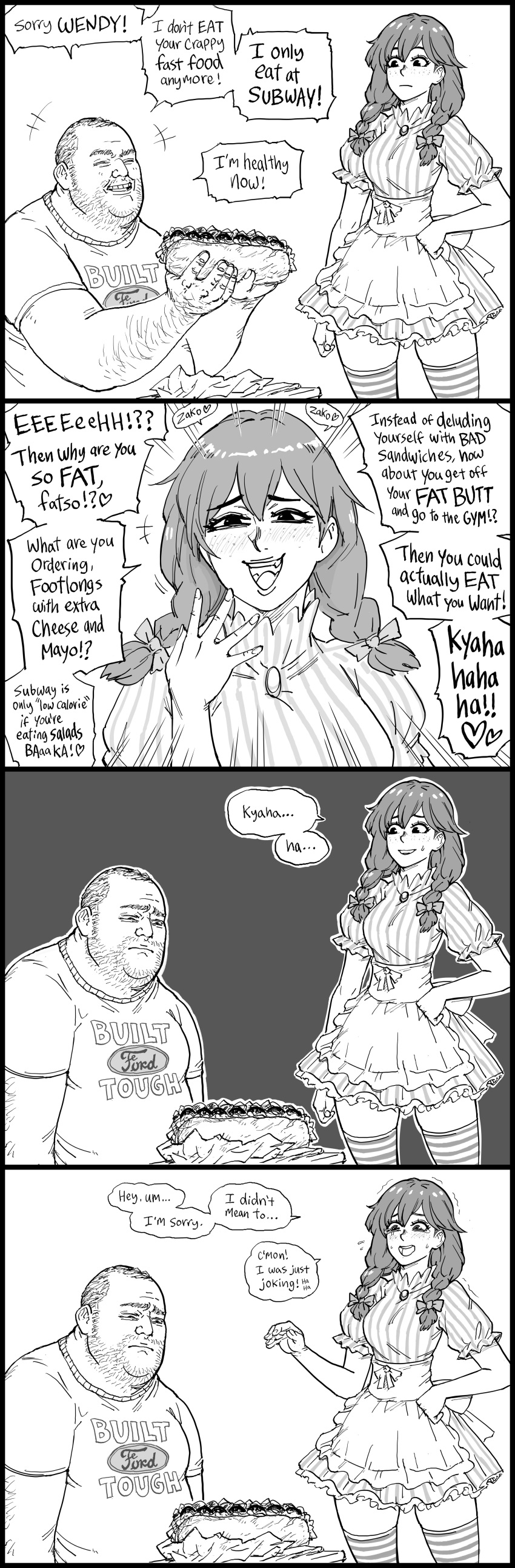 Tags: 1boy1girls4komaabsurd resbb (baalbuddy)black and whitebullyingdialogueenglish textfemalefoodfunnyimageboardmalemesugakimonochromeRule34speech bubbletrollingwendy thomaswendy'swhite background