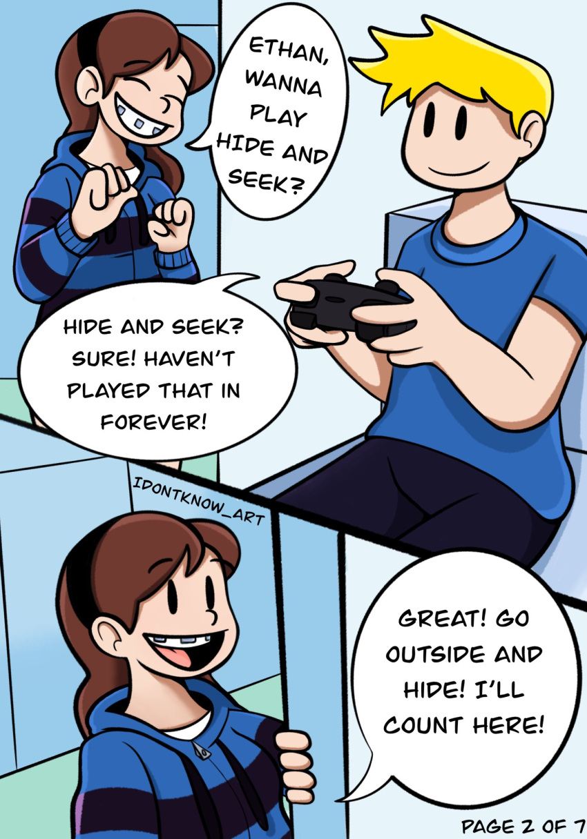 Tags: 1boy1girlbehind doorblue backgroundbracesbrother and sistercontrolleremma (hide and seek extreme)ethan (hide and seek extreme)idontknow artimageboardjacketlooking at anotherpage 2Rule34smilingyellow hair