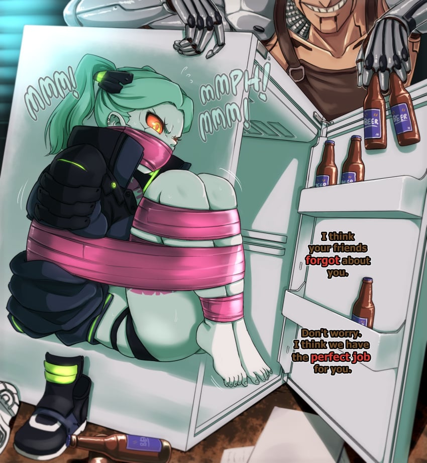 Tags: beerbondagecapturedcyberpunk 2077cyberpunk: edgerunnerscyborgfemale focusimageboardissa94no sexrebecca (edgerunners)refrigeratorrestrainedRule34tattootext
