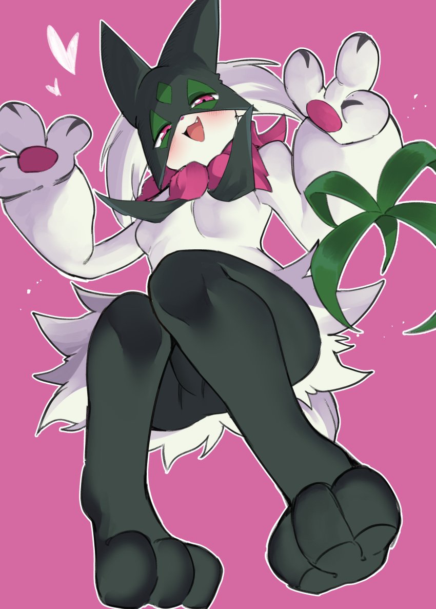 Tags: 1girlabsurdresanimal feetanimal handsanimal noseanthroblack furblushbody furbreastscat girlcat tailcommentarycutecute facecute feetfangfrom belowfurryfurry femalegreen furgreen hairhalf-closed eyeshands uphappyhearthighresimageboardinvisible chairknees together feet apartlegslooking at viewerlooking downmeowscaradaopen mouthoutlinepawpadspink backgroundpink eyespokémon (species)pokemonRule34short hairshun sokusimple backgroundsittingsmall breastssmilesolotailtwo tone furwhite outline