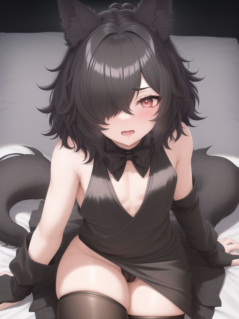 Tags: 1boyai generatedbedblack dressblack haircrossdressingexcitedfemboyfox earsfox tailimageboardlooking at viewerlooking upnixernixer (ai)on bedoriginalotoko no koRule34salivatagmethick thighstomgirltrapvtuber