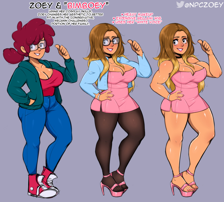 Tags: bimbobimboficationblack eyesblonde highlightsbrown haircharacter sheetchokercleavageclothingdressenglish textfull bodyglassesheelshi resimageboardlong hairlooking at viewernpczoeypantyhoseponytailred hairred lipstickRule34smilingsmiling at viewerthick thighsthumbs upzoey (npczoey)