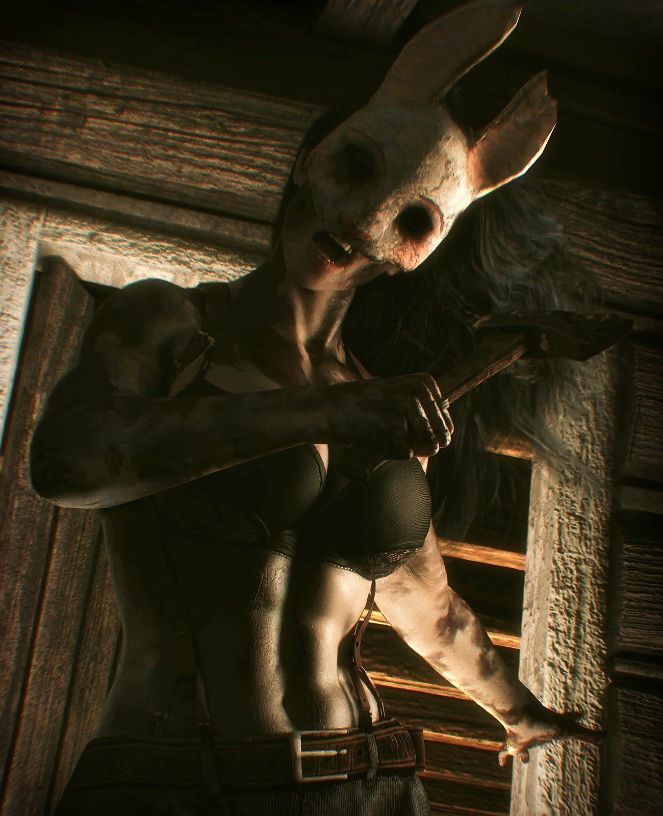 Tags: absaxebladed weapondead by daylightfemale onlyhatchethorrorhuntress (dead by daylight)imageboardlooking at viewermaskmelee weaponmusclesmuscular femaleRule34