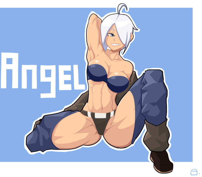 Tags: 1girlsabsahogeangel (kof)armpitsblue eyeschapscleavagehair over one eyehi resimageboardking of fightersmuscular femalerice(bob)Rule34short hairsimple backgroundsmilesolospread legstextthick thighswhite hair