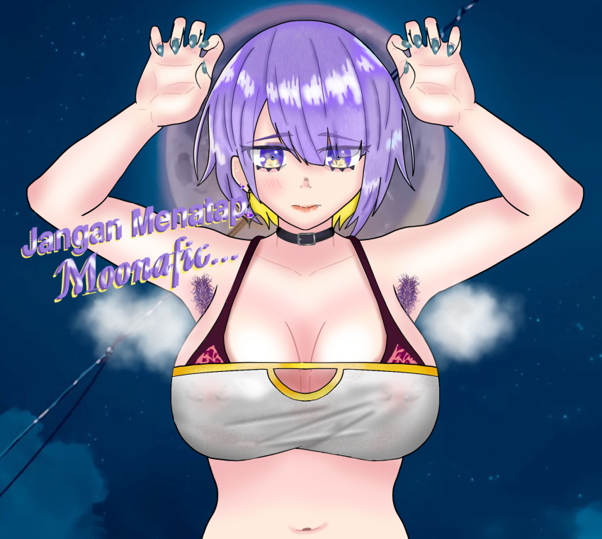 Tags: 1girlsalternate hairstylearmpit hairarms upbangsbellybuttonbikinibikini under clothesblack chokerblushchokerclaw poseclosed mouthearringseddarxarteyebrowsfangsfemalehololivehololive indonesiaimageboardindonesian textlarge breastsmoonmoona hoshinovamoonlightnipple piercingnipples visible through clothingofficial alternate hairstylepainted nailsparted bangspurple armpit hairpurple eyespurple hairRule34short hairsolosolo femalesteaming bodystraight-onstreamertexttube toptubetoptwo tone hairvirtual youtubervtuber