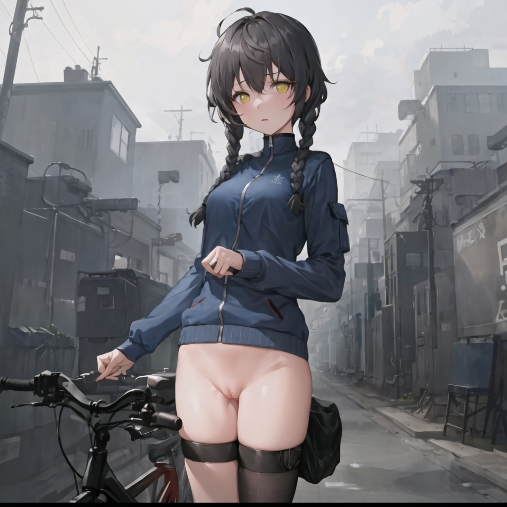 Tags: 1girlsai generatedamane suzuhabicyclebottomlessbraided hairbrown hairexhibitionismfemalefluffy hairfogimageboardlight-skinned femaleno pantiesoutdoorspublic nudityRule34solo femalestandingsteins;gatethigh straptomboytowntrack jackettrack toptwin braidsyellow eyes