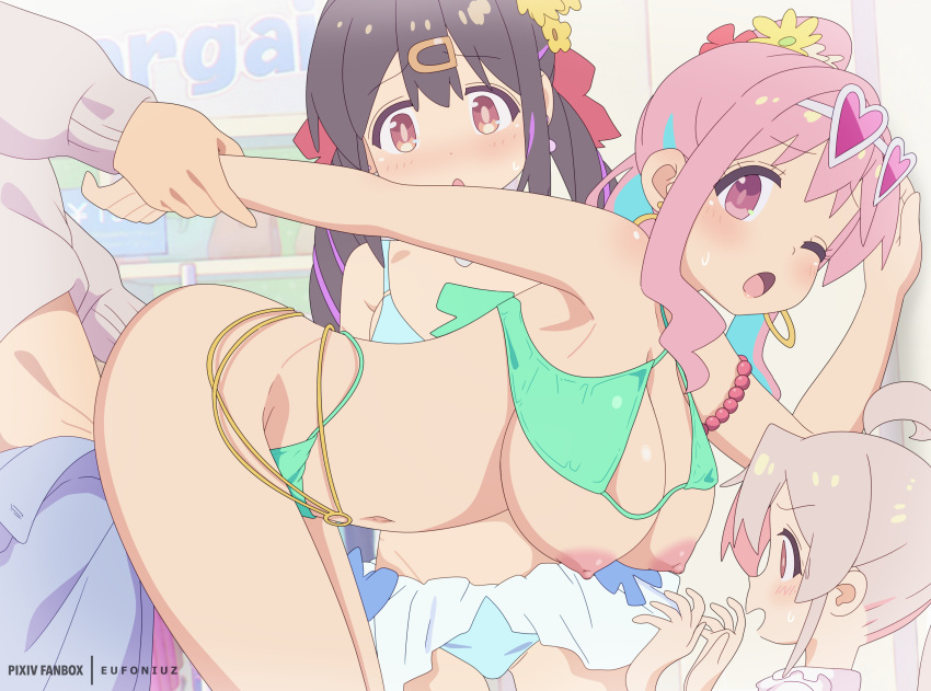 Rule 34 – 1girls breasts breasts out brown eyes cleavage cynthia (pokemon) female flashing hair ornament human human only large breasts long hair midriff navel nipples no bra pokemon pokemon dppt shirona (pokemon) smile solo text undressing very long hair white background wink | 102369