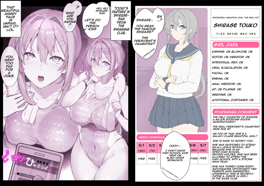 Tags: 1boy1girlsbig breastsblue eyesblushbrainwashingembarrassedenglish textgrey hairhimukai kyousukehypnosishypnosis appimageboardmind controlnetorareone-piece swimsuitoriginalpartially coloredphoneponytailright to leftRule34sexuality changeskirtstudentswimsuittagmethick thighstranslated