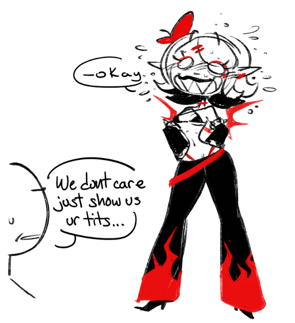 Tags: annoyedbaggy pantsbat wingsberetblack high heelsblack lipstickblushbrabreastschokereyelinerfaceless characterfaceless maleflame printhaircliphands behind backheelshipshourglass figureimageboardlipsticklong earsnaomi sunnavelnervousnervous sweatohthesunnysidepointed earspointy earsraised eyebrowsred eyelinerRule34sharp teethshort hairsleevesspiked armlettexttext bubblethin waistthongvampirewhite backgroundwhite eyeswide stance
