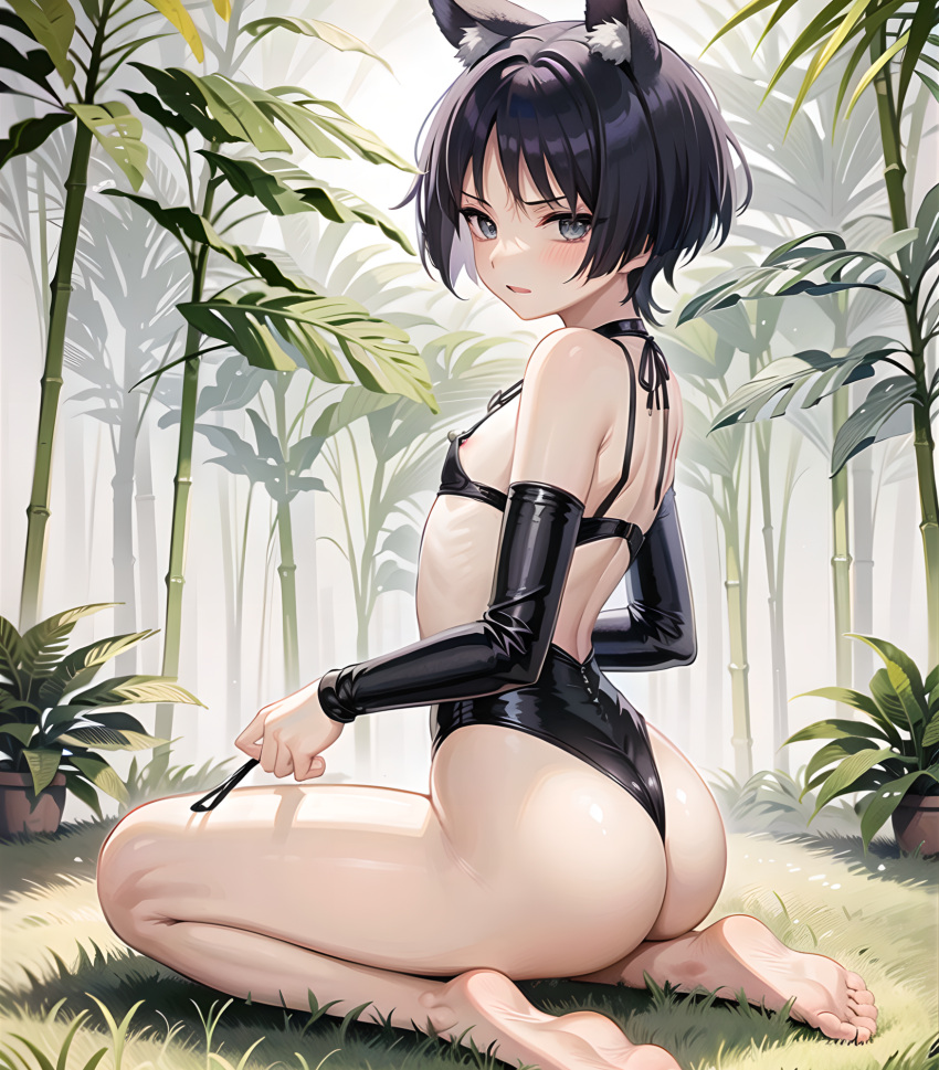 Tags: 1boyai generatedanimal earsassass focusbarefootblushbradetached sleevesfake animal earsfeetfemboyforestfrom behindgenshin impacthighresimageboardlatex clothinglooking at viewerlooking backnippleson grasson groundotoko no koRule34scaramouche (genshin impact)sittingsolosolo focusstable diffusiontagme