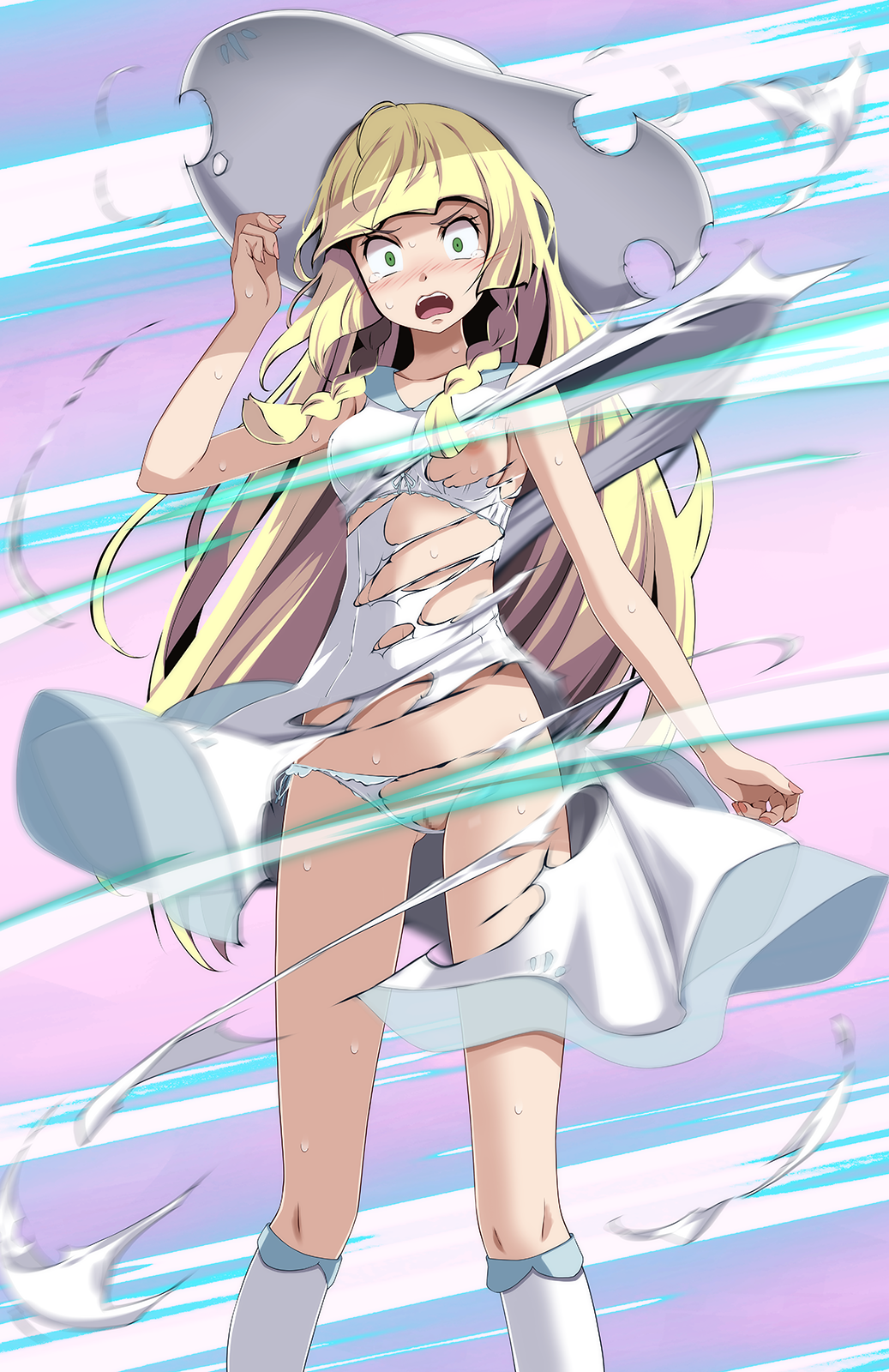 Tags: 1girlsbare armsblonde hairblue sailor collarblushbrabreastscensoredcollarbonedressembarrassedfemalegreen eyeshathighresimageboardkneehighslillie (pokemon)long blonde hairlong hairlooking at viewermosaic censoringnail polishnipplesopen mouthpantiespink nailspokemonpokemon (game)pokemon smpussyRule34sailor collarshort dresssleevelesssleeveless dresssmall breastssockssolostandingsun hatsundresssweatdroptearing uptearstorn bratorn clothestorn dresstorn hattorn pantiestsukishiro saikaunderwearvery long hairwhite brawhite dresswhite headwearwhite panties