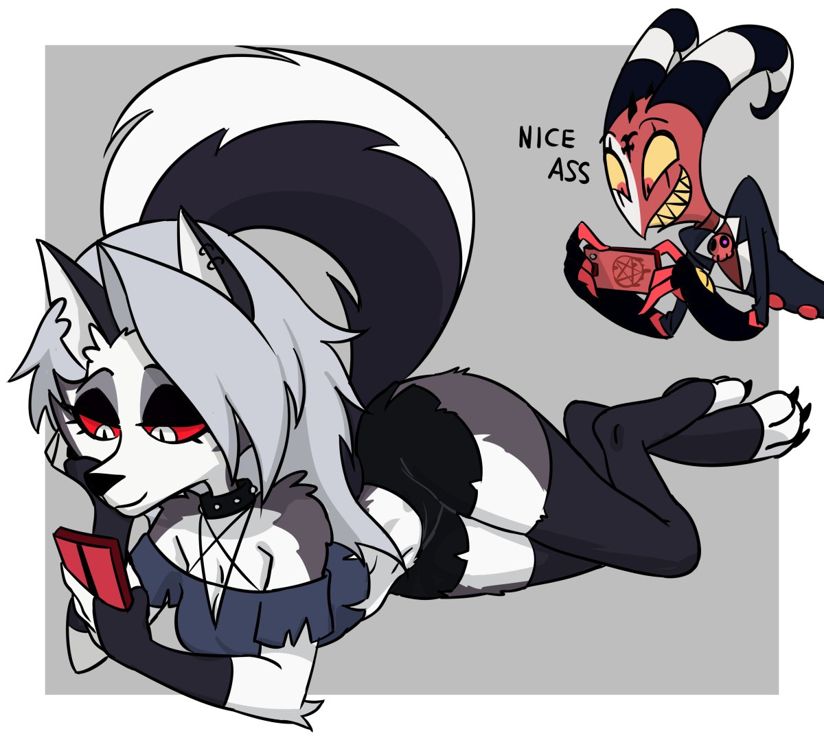 Tags: 1boy1boy1girl1girlsartist requestblitzo (helluva boss)centinel303fully clothedfurrygothgoth girlgrey furhelluva bossimageboardloona (helluva boss)red scleraRule34tagmetaking picturetechnical incestwhite fur