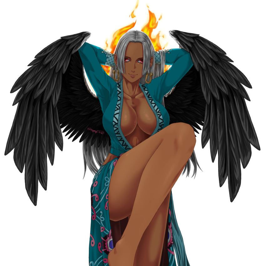 Tags: aged upblack wingsdark skindark-skinned femalefirefirst porn of characterhands behind headimageboardone piecered eyesRule34seraphim (one piece)solosolo femalestargazypiewhite backgroundwhite hairwings