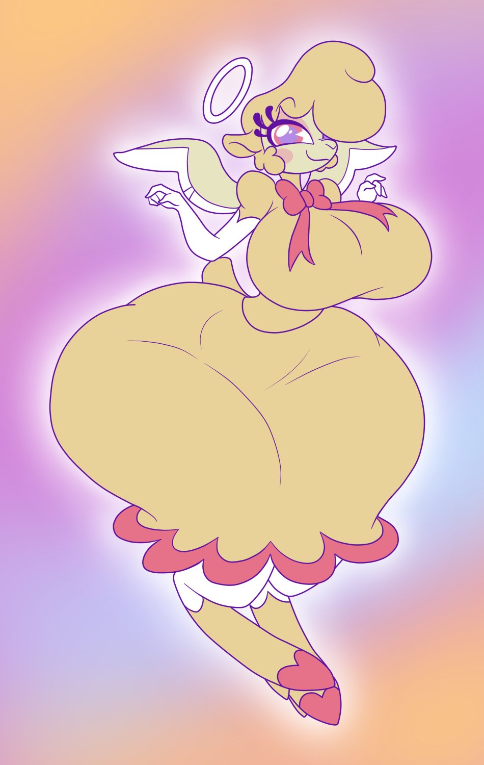 Tags: 1girlsangelangel wingsanthrobig breastsbreastscherubcurvyfemalehalohelluva bosshourglass figurehuge breastsimageboardkecomasterkeenie (helluva boss)looking at viewerpink eyespink irisespurple pupilsRule34sheep girlsmilesolosolo femalethick thighsvivienne medranowide hipswingsyellow fur