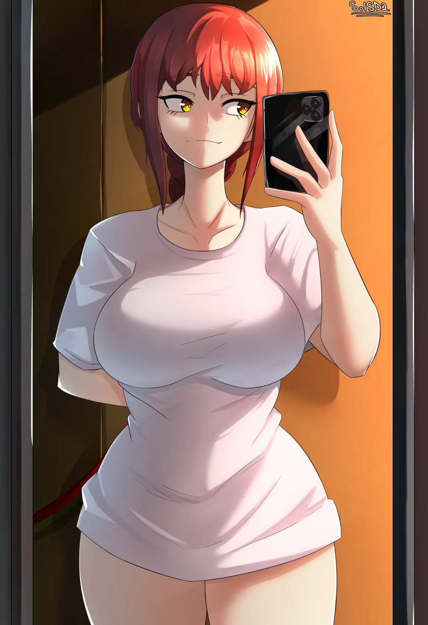 Tags: 1girlsbig breastsbreastschainsaw manclothingfemalefemale onlyhairhuge breastsimageboardmakima (chainsaw man)mirrorphonered hairRule34selfieshirtsmilesol-sama d2solosolo femalethighstopwearwhite shirtyellow eyes