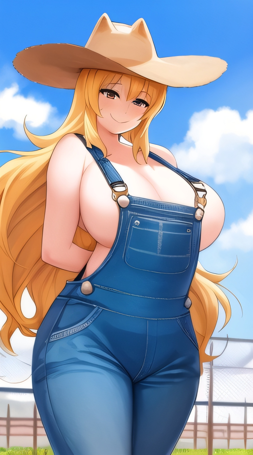 Tags: 1girlsai generatedbig breastsbig buttbrown eyescloudcowboy hatdigital media (artwork)farmfarmgirlfemalefencehuge breastsimageboardlight skinlight-skinned femalelong hairmischievous smileoverallsoveralls onlyRule34smilingsmirkstetsonsunnythick thighsyellow hair