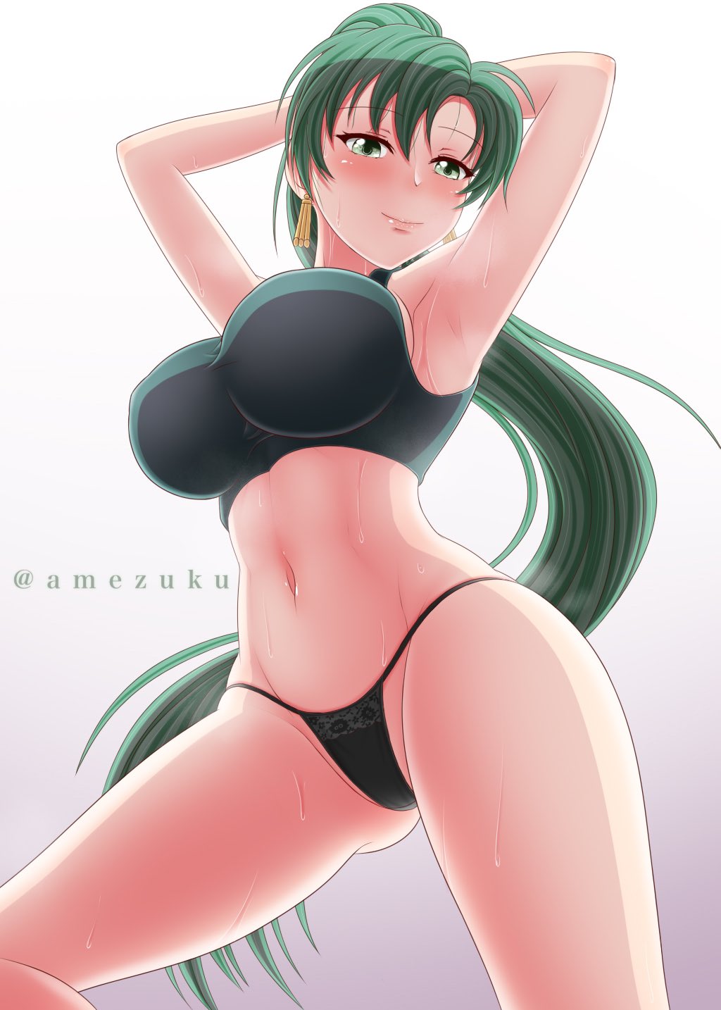 Tags: 1girlsamezukuass visible through thighsbare legsbare midriffbrabreastsfemalefemale onlyfire emblemfire emblem: the blazing bladefrom belowgreen eyesgreen hairgreen pantiesheavy breathingimageboardlarge breastslegslong hairlooking at viewerlooking downlyn (fire emblem)midriffnintendoponytailposeRule34seductivesmilesolosweatsweatyunderwear