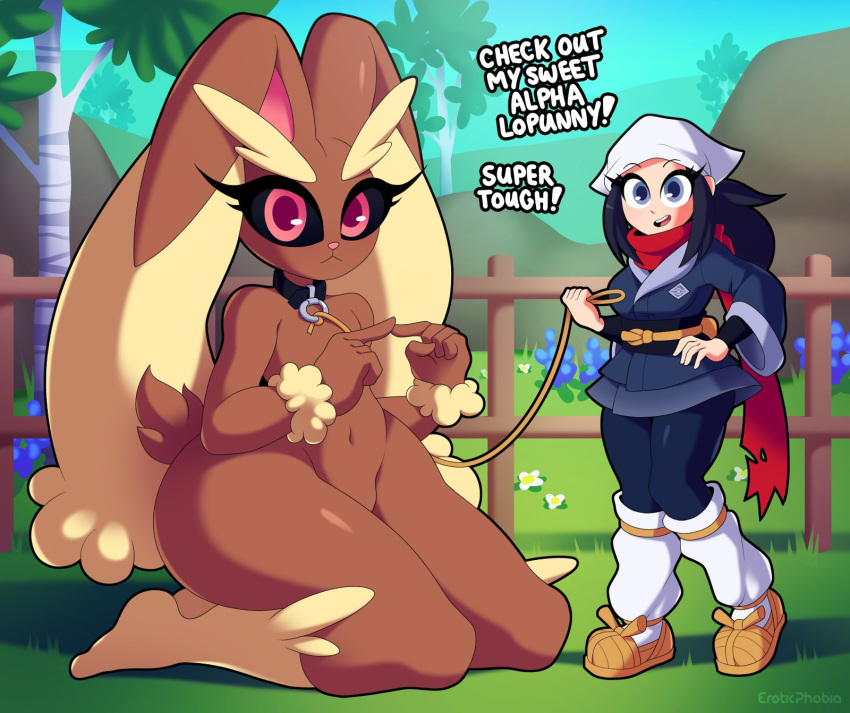 Tags: 1boy1girlsakari (pokemon)animal earsblack sclerablue eyesblushbrown bodybrown furbrown skinbunny earscollardialogueeroticphobiaeyebrowseyebrows visible through haireyelasheseyeshadowfemalefemboyimageboardlong earslooking at viewerlopunnymalemale lopunnynavelninjapink eyespokémonpokémon (species)pokemonpokemon legends: arceusRule34tailtexttext bubblethick thighsthighswide hips