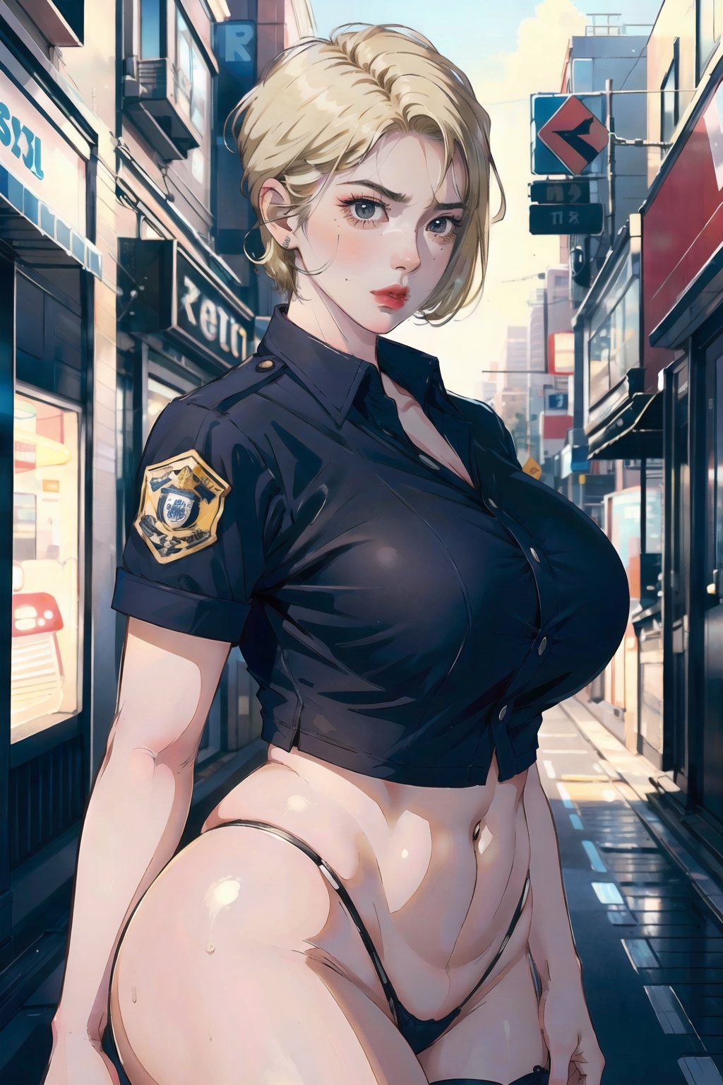 Tags: 1girlsai generatedbreastsfemalefemale onlyimageboardlarge breastslipsticklooking at vieweroppaipriestoriginalpolicepolicewomanRule34shirtshort hairsolothighhighsthighsthongwide hips