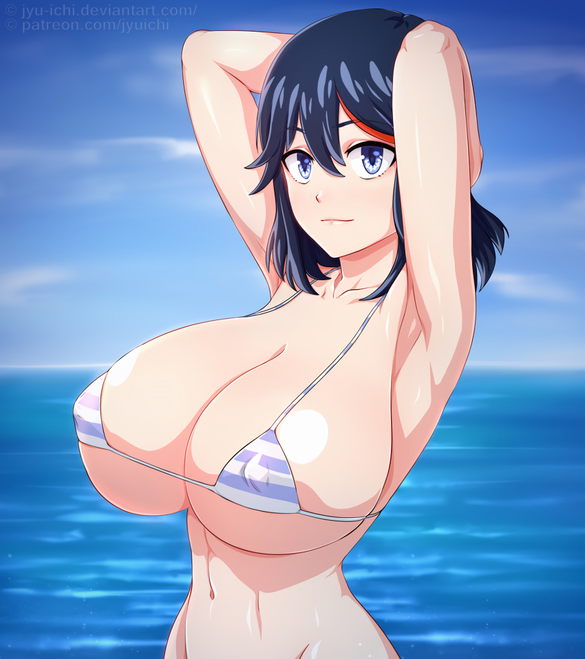 Tags: 1girlsbeachbig breastsbikinibreasts bigger than headenormous breastshands behind headhuge breastsimageboardjyuichikill la killlooking at viewermassive breastsmatoi ryuukoRule34short hairtagmetomboy