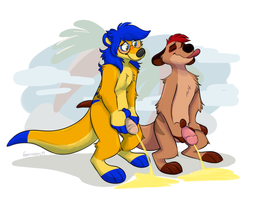 Tags: admiringanthrobeing watchedblue hairblushbodily fluidsdisneyduoeyeweargenital fluidsglasseshairherpestidhi resimageboardlooking at anothermalemale/malemammalmeerkatorlandofoxpeeingpeeing on groundRule34the lion kingtigerthemeerkattimonurinewatersports
