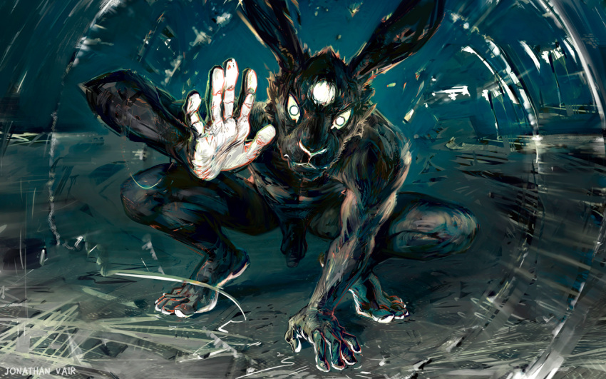 Tags: 1boyanthroblack bodyblack furcrouchingflaccidfurgenitalshumanoid genitaliahumanoid penisimageboardlagomorphleporidlong earslooking at viewermalemale onlymammalnudepenisrabbitRule34solostigmata
