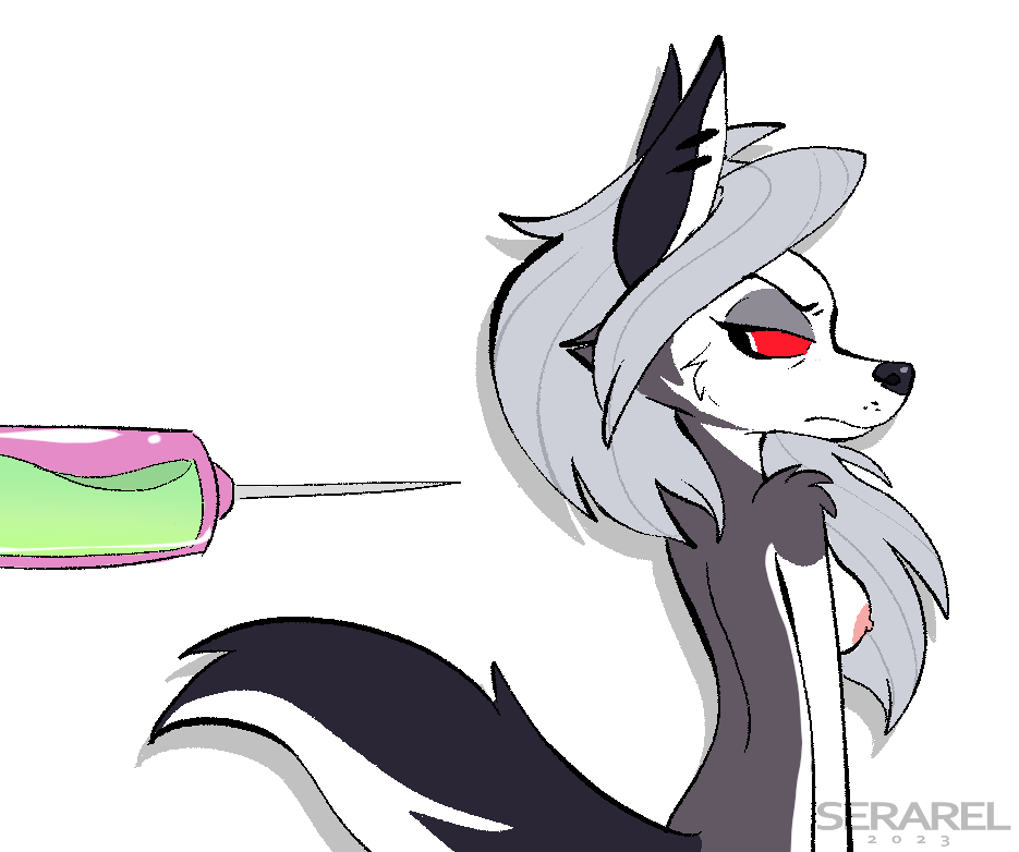Tags: anthroblack nosecanidcaninedemondemon girlear piercingfemalefurfurryfurry onlygrey bodygrey furgrey hairhellhoundhelluva bossimageboardlong hairloona (helluva boss)mammalneedlenipplespiercingred scleraRule34serarelsolotailwhite bodywhite eyeswhite fur