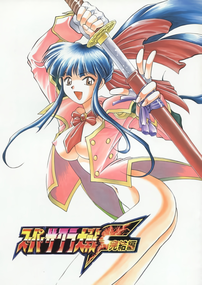 Tags: 1girlsassbig breastsblue hairbreastsbrown eyesbustyfemalefemale onlyfingerless gloveshair ribbonimageboardlarge breastslegslong hairlooking at viewernavelnipplesopen clothesopen mouthponytailRule34sakura shingujisegasmilesoloswordthighsuniformvweapon
