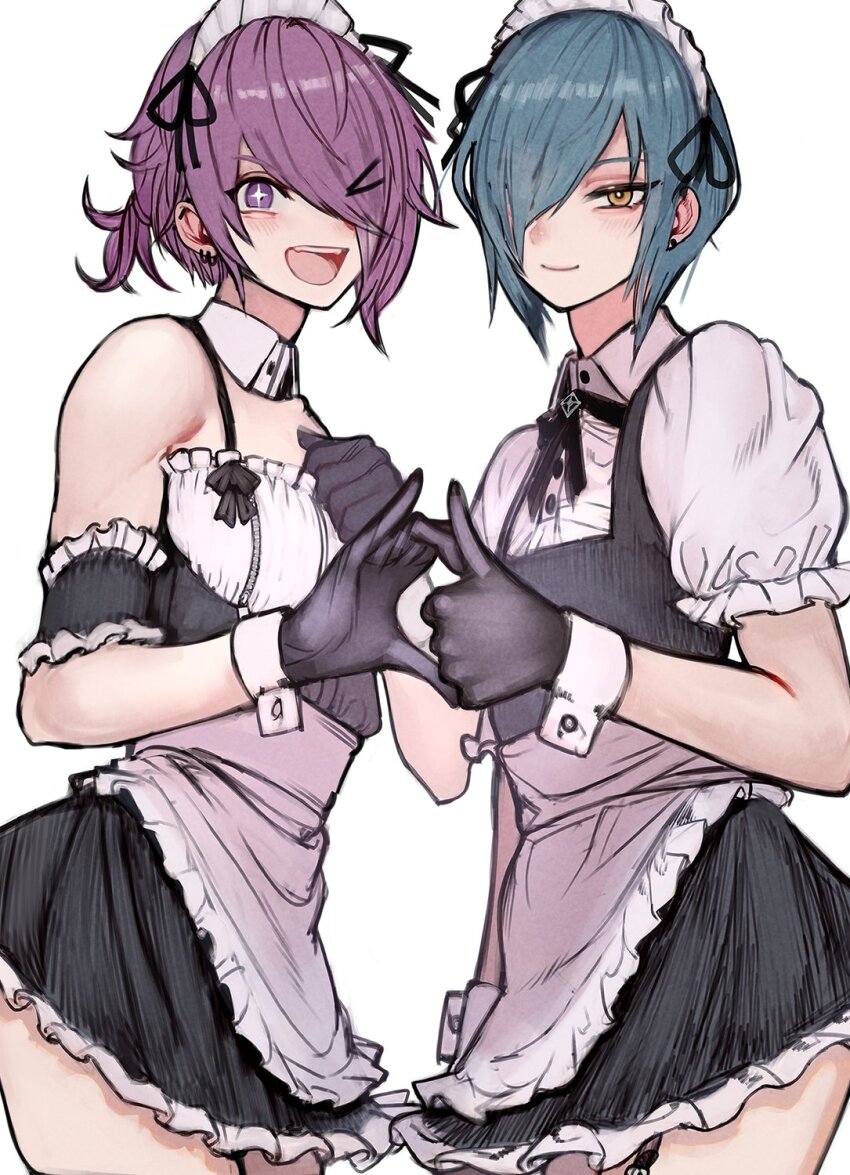 Tags: 2boys2futas2n5apronblack dressblack glovesblue hairdetached collardressearringsemoemo boyfemboyfrilled apronfrillsglovesgothgoth boyhair ornamenthair over one eyehappyheartheart handsheart hands failurehighresimageboardiriya-kunjewelrylooking at viewermaidmaid apronmaid headdressmalemale maidmale onlymikel-kunmultiple boysno visible genitaliaopen mouthoriginalotoko no kopuffy short sleevespuffy sleevespurple eyespurple hairRule34short hairshort sleevessmilestar eyesthumbs uptrapwaist apronwhite apronwrist cuffsyellow eyes