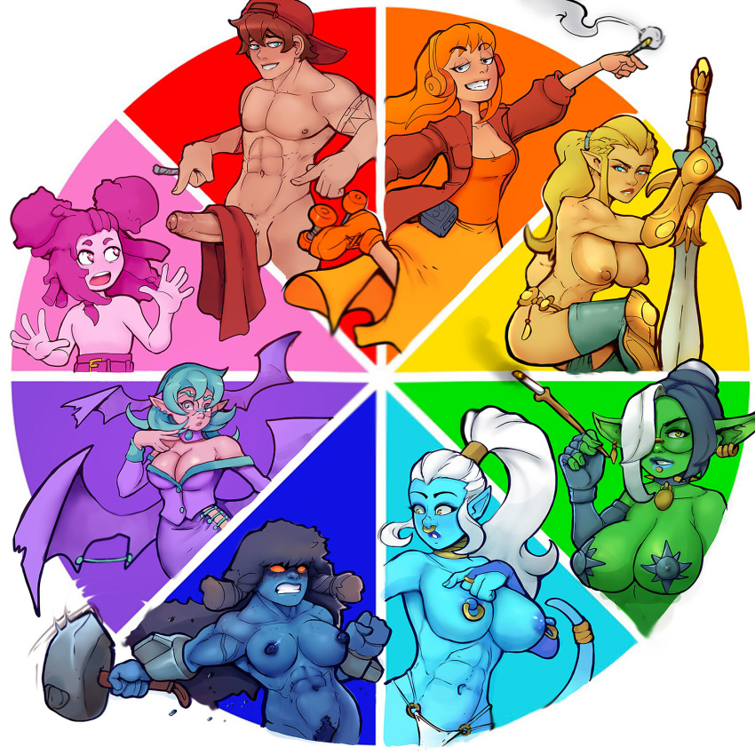 Tags: 1boy7girlsangrycapcolorcoloreddemondemon girlelfelf earsimageboardlooking at viewermarkydaysaidnakednaked femalenaked malepierced earspierced nipplespiercingpiercingsRule34smokingswordtroll