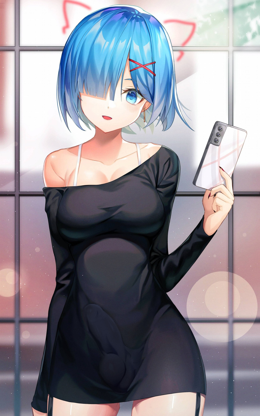 Tags: artist requestblue eyesblue hairbulgeeditfutanariimageboardpenisre:zero kara hajimeru isekai seikatsurem (re:zero)Rule34testiclesthird-party edittight clothing