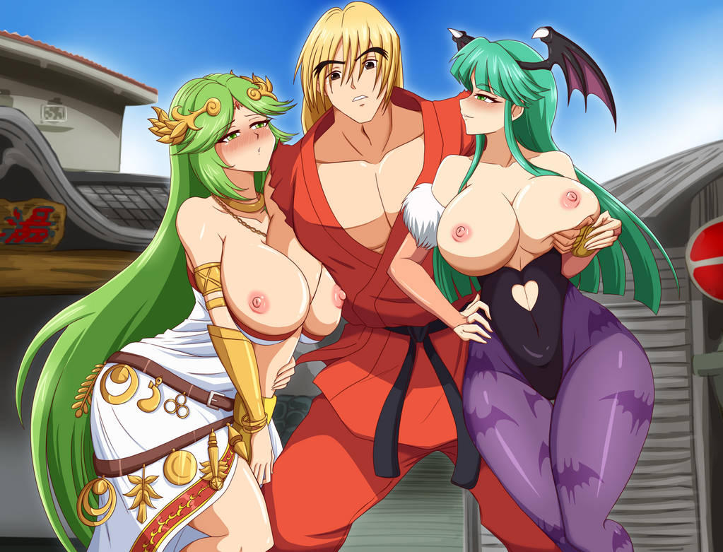 Tags: 1boy2girlsbat wingsbetween breastsblonde hairblushbreastsbreasts outcrossoverdemondemon girlflirtinggrabbinggrabbing anothers breastgreen eyesgreen hairimageboardjewelryken masterskid icaruslarge breastsmorrigan aenslandmultiple girlsnon-web sourcepalutenapantyhoseRule34seduce (eroge)street fightersuper smash bros.vampire (game)wings