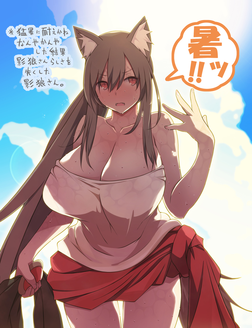 Tags: alternate hairstyleanimal ear fluffanimal earsbacklightingbare shouldersbreastsbrown haircleavagecloudcloudy skyfangsfanning selffemalehothuge breastsimageboardimaizumi kageroukagerou imaizumilong hairopen mouthotoufu (wddkq314band)partially undressedponytailred eyesRule34shirtskysolosweattailtied skirttouhoutranslation requestvery long hairwetwet clotheswet shirtwolf earswolf tail