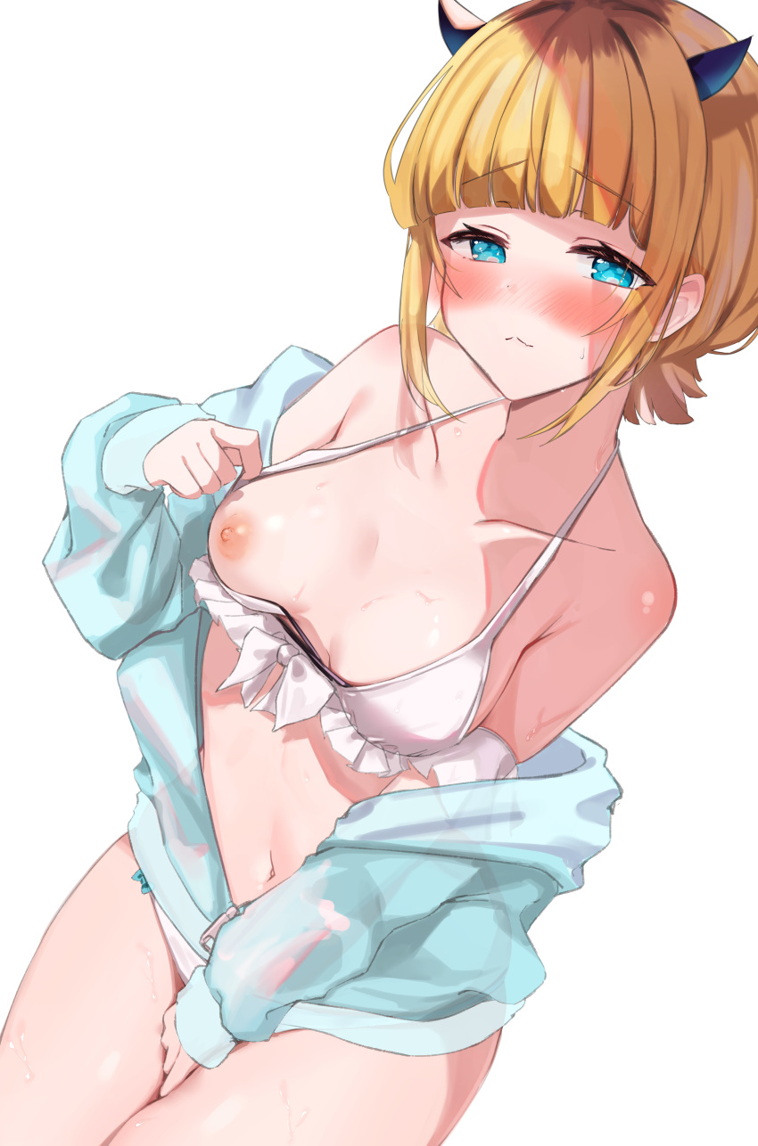 Tags: 1girlsabsurdresbare shouldersbikinibikini pullblonde hairblue eyesblue jacketblushbreastsclosed mouthclothes pullcollarbonecommentary requestdemon hornsdutch anglefolia leaffrilled bikinifrillshalterneckhighreshornsimageboardjacketlong sleeveslooking at viewermedium breastsmemchonavelnipplesoshi no kopulled by selfRule34shadowshort hairsidelockssimple backgroundsolostomachsweatdropswimsuitvariant setwhite backgroundwhite bikini