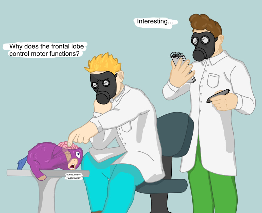 Tags: abuseambiguous genderblue eyesbottomwearbrainbrown hairchairclothingcoatdialogueenglish textferalfluffy ponyfluffy pony (species)furfurnituregas maskgoregrouphairhi reshumanimageboardlab coatmalemammalmasknotebookorange hairorganspantspenpurple bodypurple furrampageRule34simple backgroundtexttopweartorturetrio