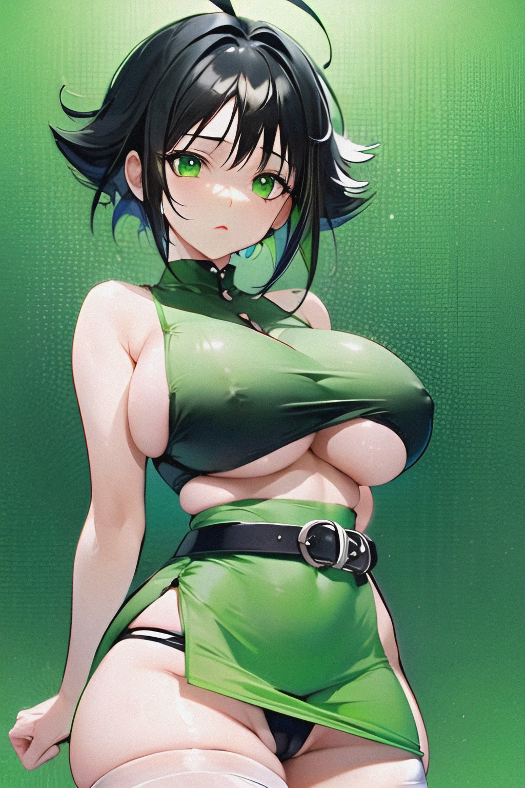 Tags: 1girls2023ai generatedareolaeblack hairblack pantiesblushbuttercup (powerpuff girls)cartoon networkclothingfemalefemale onlygreen backgroundgreen clothinggreen eyeshuge breastsimageboardlegwearpantiespiercingpowerpuff girlsRule34thick thighsthigh socksthighhighs