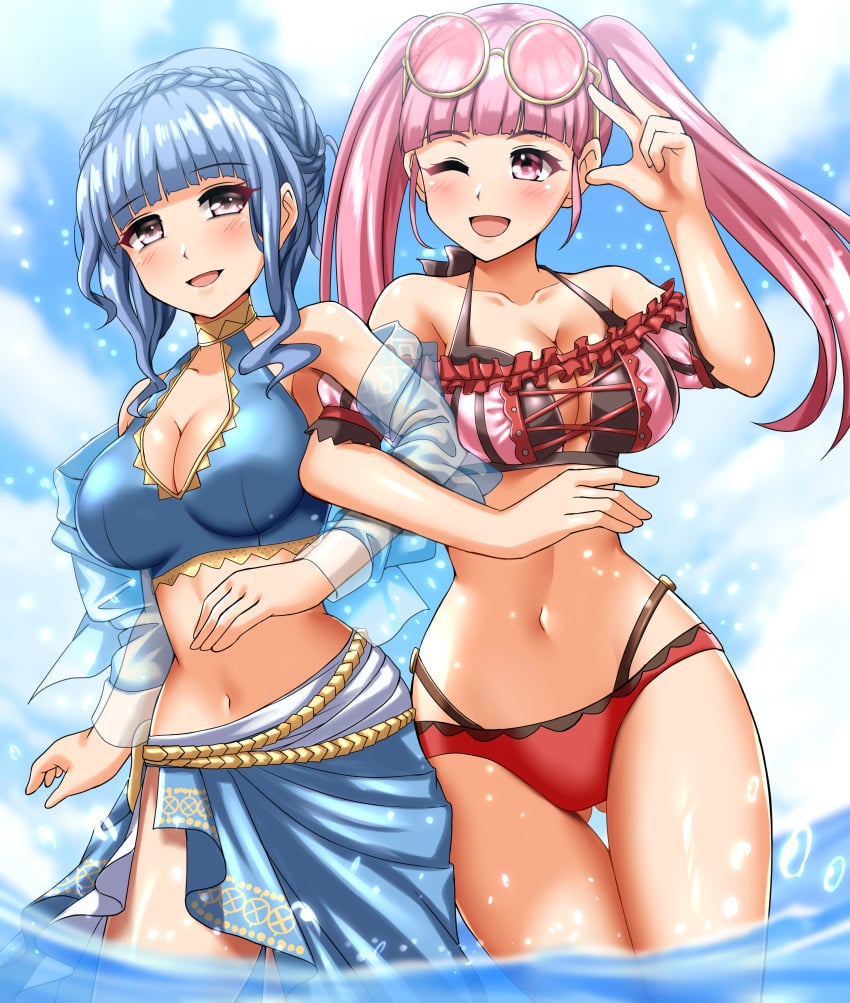 Tags: 20232girlsabsurdresalternate costumebikiniblue hairbrown eyescleavagefemalefemale onlyfire emblemfire emblem heroesfire emblem: three houseshighreshilda valentine gonerilimageboardlarge breastslight skinlight-skinned femalelong hairmarianne von edmundnanashi79410097nintendoofficial alternate costumeone eye closedopen mouthpartially submergedpink eyespink hairRule34see-through clothingsunglassessunglasses on headswimsuittwintailswaterwink